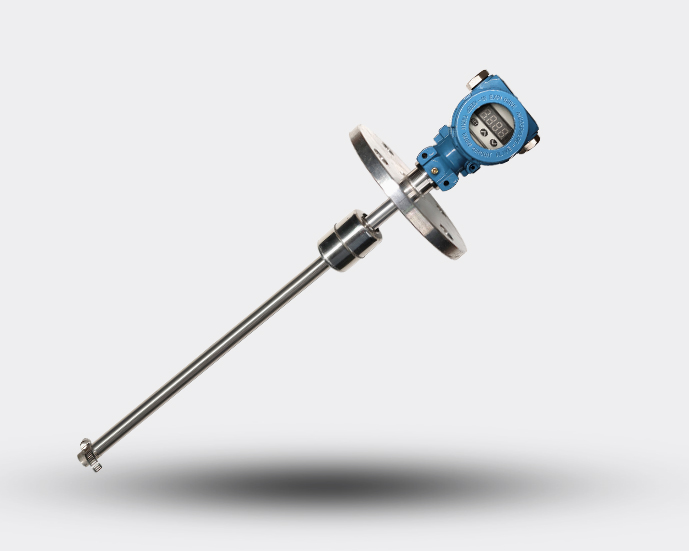 由液位傳感器和智能HART板(電流轉換器)兩部分組成,浮球與液位同步變化,控制干簧管吸合斷開,從而使傳感器內電阻成線性變化,再由轉換器將電阻的變化轉換成4~20mA標準電流信號或疊加HART數字信號輸出。